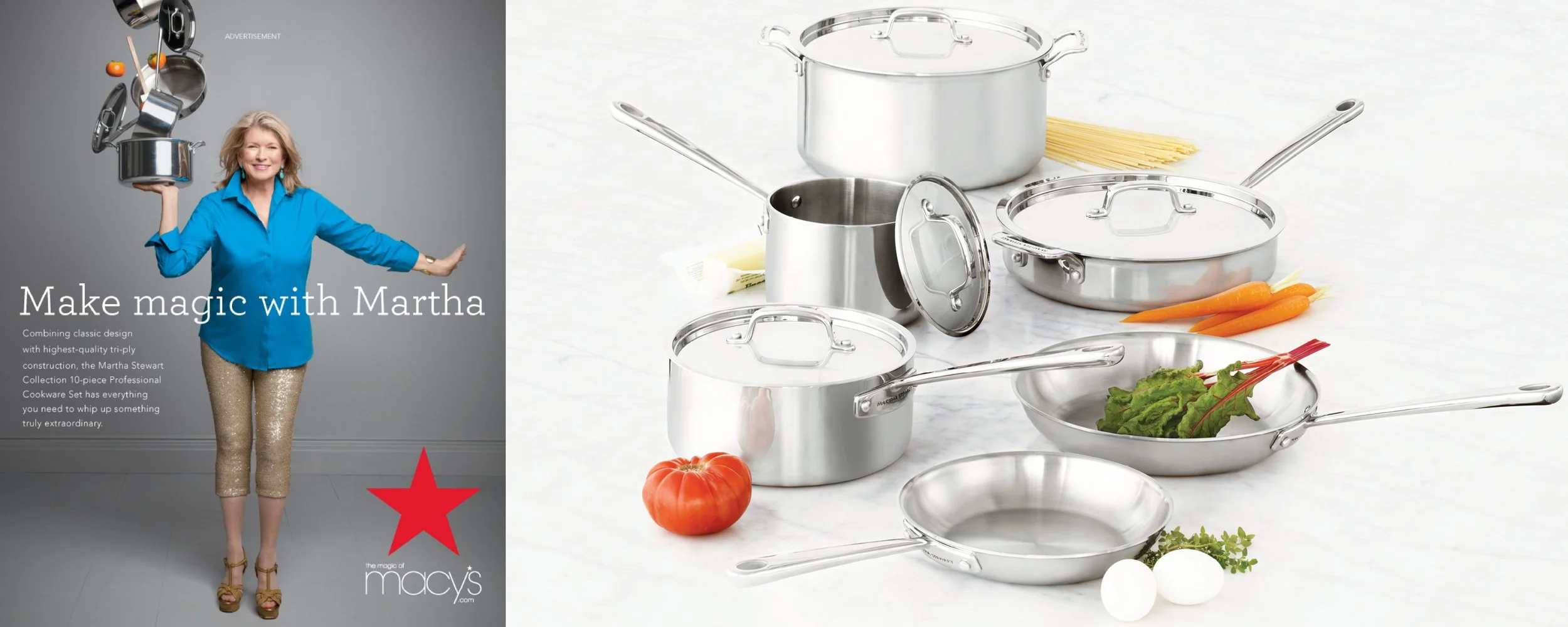 MARTHA STEWART Enamel Cast IronRETAILER: Macy’s Tri-Ply CookwareRETAILER: Macy’s Ceramic BakewareRETAILER: Macy’s BOBBY FLAY FOOD NETWORK TOOLS
